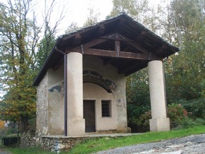 La struttura originaria - con facciata aperta - risale presumibilmente alla metà del XV secolo. La struttura aperta potrebbe far pensare ad una cappella che aveva tra le funzioni principali quella di ospitare le processioni funebri dalle frazioni più lontane verso il luogo di sepoltura la paese. In seguito la cappella fu dotata di una cancellata lignea. Nel XVIII secolo la cappella fu ampliata e fu costruito il portico anteriore.